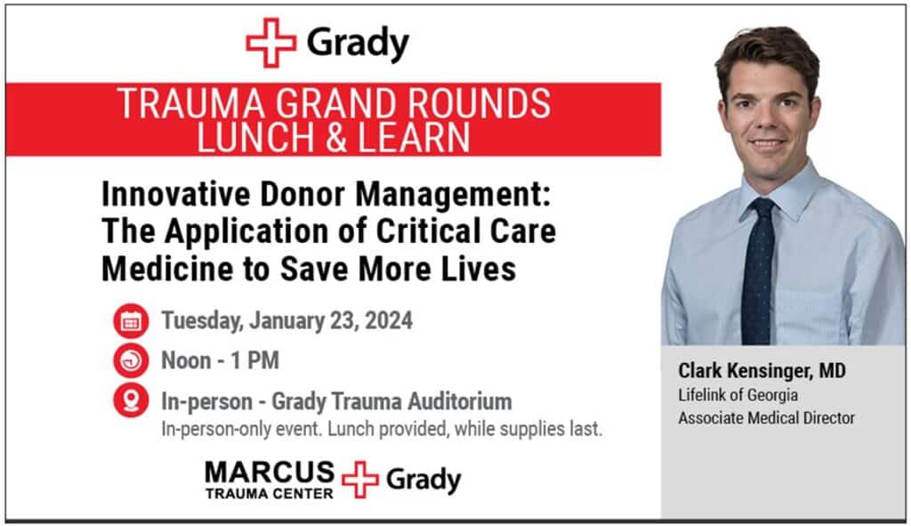 Grady Trauma Grand Rounds Jan 2, 2024 | Region 3, Region 3 Injury Prevention and Education Tuesday, January 23 | 12:00 – 1:00pm (In-Person ONLY) – Grady Trauma Auditorium